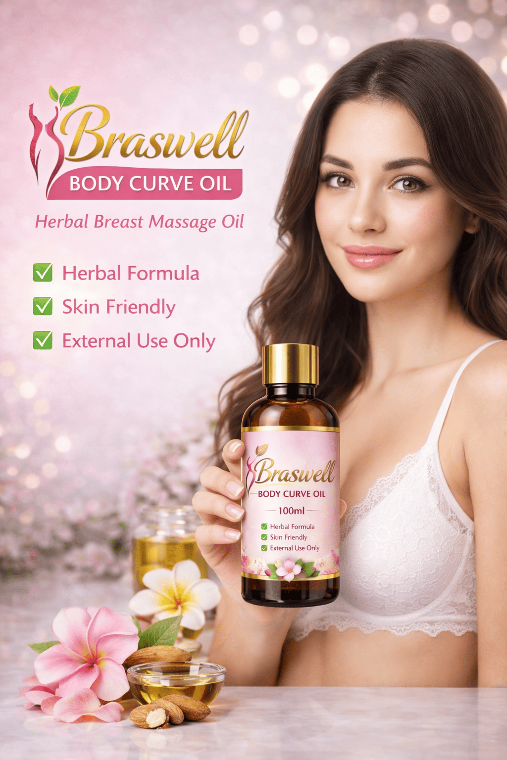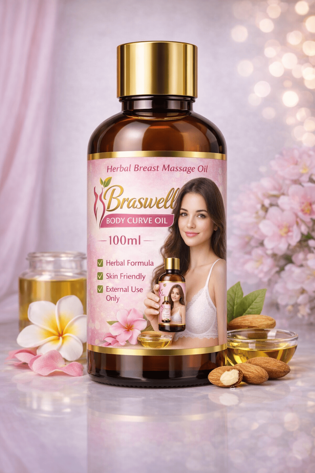 Braswell Body Curve Oil is a premium herbal massage oil specially formulated to support firmness, toning, and improved appearance of the bust area. Its herbal blend helps nourish the skin while promoting a smoother and more contoured look.